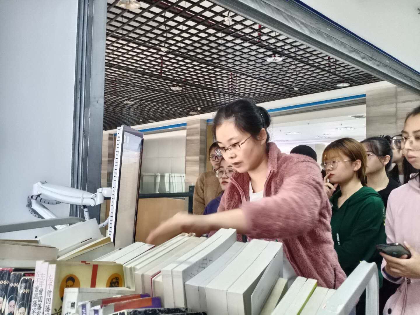 这是她第一次走出图书馆,用略显笨拙甚至原始的方法将图书送到了学生身边。而正是这种细微化、个性化的图书馆服务,受到了学生们的热烈欢迎和高度赞扬。紧接着,李侠老师通过建立微信交流群,线上组织同学们交流、分享阅读体会和阅读成果。2017年10月,她发动部分爱好阅读的同学创建了“安康学院读书分享会”,每两周进行一次读书分享活动。在借来的教室里,13名同学有了交流、分享的平台,以读交友,“播撒书种,传递书香”,感受阅读带来的快乐。2017年11月,在旅环学院老师的邀请下,她又带书进入旅游管理2017级新生班,引导他们“共读、共享、共成长”。