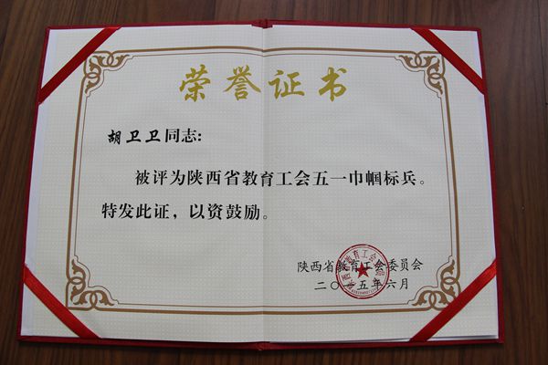 经各分会推荐,工会女工委联评上报。陕西省教育工会《关于表彰教育系统先进女教职工集体和先进个人的决定》(陕教工会〔2015〕31号),授予我校体育系公共体育教研室“五一巾帼标兵岗”荣誉称号,授予外语系教师胡卫卫“五一巾帼标兵”荣誉称号。