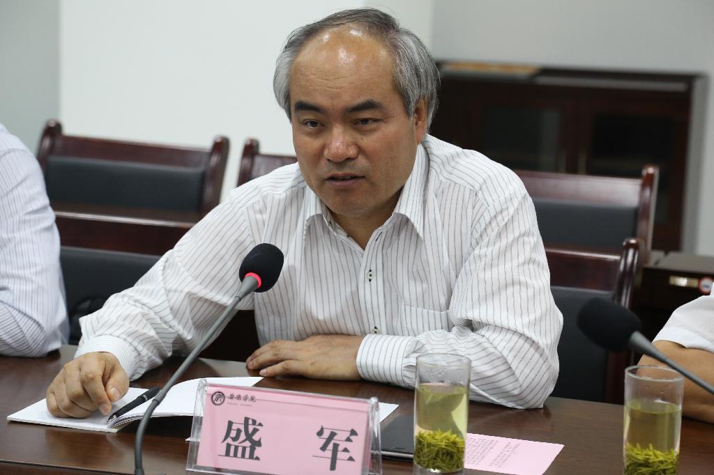 随后,盛军校长详细介绍了云南农业大学在地方产业发展方面取得的成绩,分享了其宝贵的经验和做法。他讲到在考察中他们看到了安康市政府大力发展茶产业信心和决心,并在茶园建设、品牌建设、产品创新、市场营销等方面做了大量富有成效的工作,尤其在茶园与生态观光旅游、城镇化与美丽乡村结合上做了很多积极探索创新。安康学院作为一所地方大学,具有较强的人才和科技资源优势,应该引领安康地区乃至西北地区现代农业产业发展的方向,配合市政府把特色产业发展做好、做强,争取把安康富硒茶研究院建设成国家级平台。希望通过三方共同努力,真正在“硒”字上下功夫,通过建立“安康富硒茶青年创新基金”、办好《丝路茶乡》杂志、出版《南水汉江·富硒茶乡---中国安康》、《安康红》等文化书籍,不断提高市场占有率和品牌知名度,让安康富硒茶真正成为特色产业、健康产业。他表示云南农业大学和云南特色研究院将会全力以赴为安康学院,安康市政府、为安康茶产业的快速健康发展做出贡献。