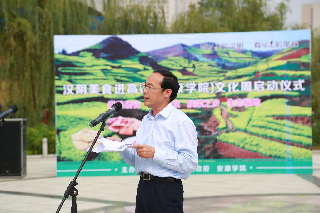 金秋时节,丹桂飘香。9月21日,由安康学院和汉阴县政府共同主办的“美食文化周”活动进安康学院全面启动,汉阴县委书记周永鑫同志致欢迎辞,安康学院校长陈刚同志讲话,市政府副秘书长、市政府办主任王龙军同志宣布汉阴美食文化周活动开幕,市农业、招商、旅游等相关单位莅临指导了这次活动。汉阴县委常委、宣传部长何友军同志主持。