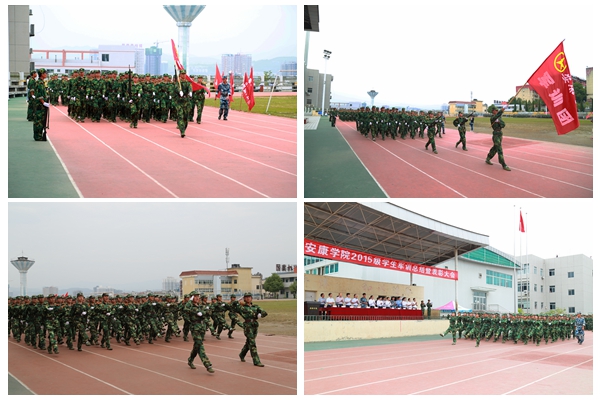 9月25日下午,我校在江南校区操场隆重举行2015级学生军训总结暨表彰大会。安康学院校长陈刚,党委副书记胡鸿晓,副校长向纪明,中国人民解放军空军少校参谋、军训团团长王旭铭,军训团参谋长吴勇睿,学校党政办、宣传部、学工部、团委、教务处、就业处、保卫处、后勤处等相关职能部门负责人,各院系党总支书记,负责军训的辅导员,2015级受训学生出席了大会。大会由向纪明主持。