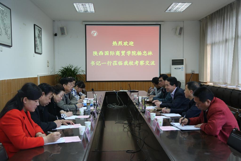 4月6日,陕西国际商贸学院党委书记杨忠林携学生处、后勤处、保卫处等部门负责人一行六人来我校考察交流,我校党委书记王国良带领相关部门负责人与来访客人就转型发展、服务外包等问题展开了深入而友好的座谈交流。