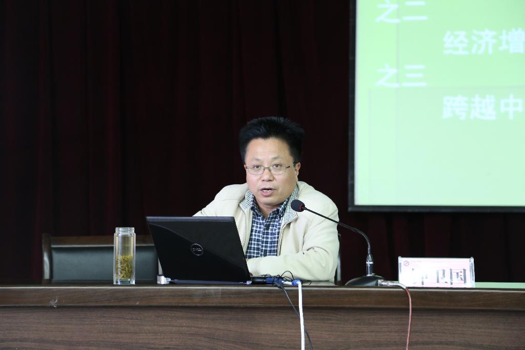 会上,钟卫国教授为大家做了《决胜阶段的路线图,发展理念的新拓展》的专题报告。他从“全面建成小康社会决胜阶段的路线图、经济新常态下发展理念的新拓展、加强改进党的领导和建设”三个方面对十八届五中全会精神和五大发展理念做了全面解读。