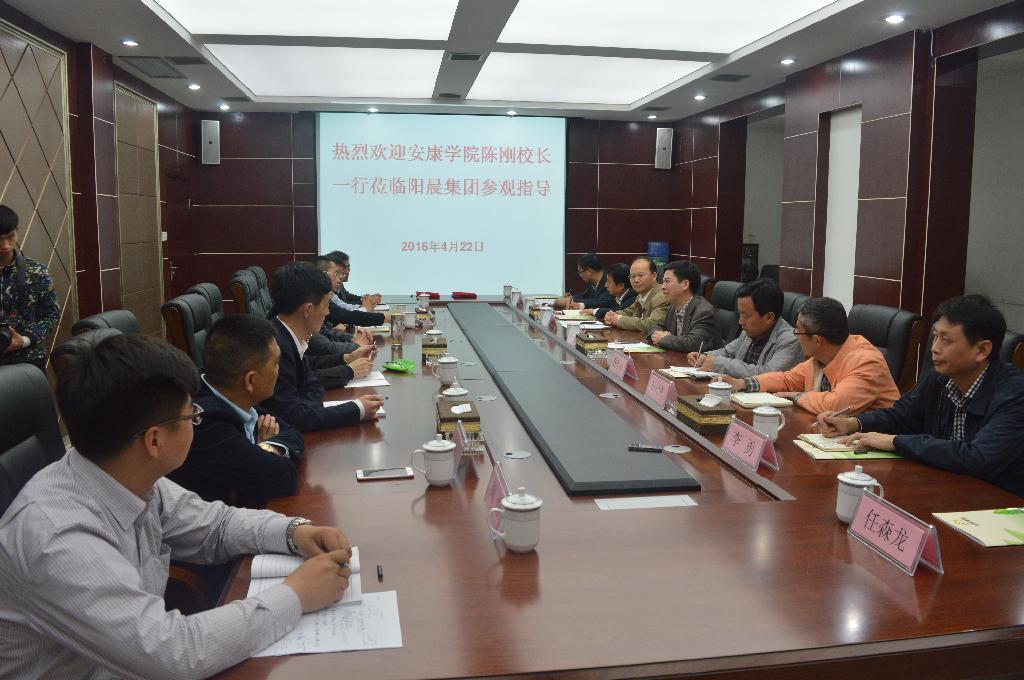 4月22日, 校长陈刚教授在现代农业与生物科技学院、经济与管理学院等二级学院领导以及发展规划处、教务处、科技处等部门负责人陪同下,前往安康阳晨现代农业集团公司考察、签署“产教融合战略协议”。座谈会、签约及揭牌仪式由发展规划处处长谢安国教授主持。