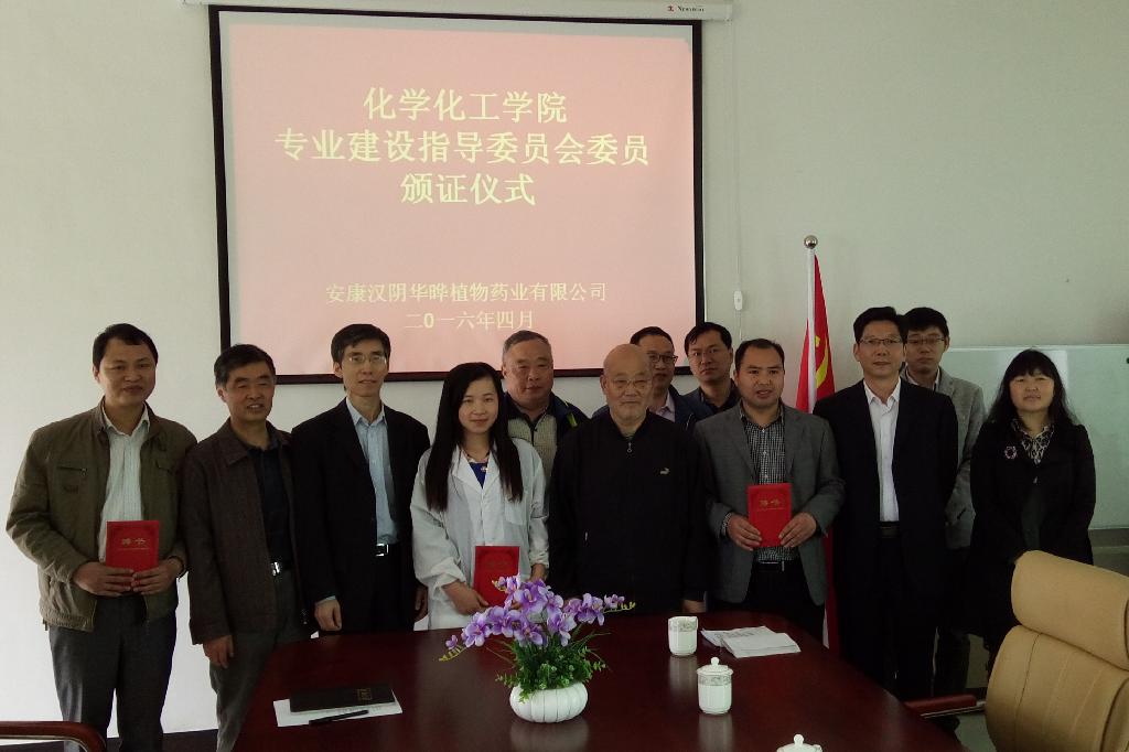 4月22日,在向纪明副校长、化学化工学院金华峰院长、科研处王刚副处长等人的陪同下,张勇民院士一行考察了化学化工学院实习实训基地——安康汉阴华晔植物药业有限公司,参观了中药材提取分离生产线和原料仓库,重点了解了杜仲综合利用项目的建设情况,并与企业代表进行了座谈交流,深入了解了企业的生产研发和市场开拓情况,建议该公司进一步拓宽杜仲产品应用市场,与大型企业或外企合作,加强杜仲系列产品的研发。考察期间,金华峰向安康汉阴华晔植物药业有限公司的李涛、张兴奎、马燕平3位工程师颁发了应用化学专业建设指导委员会委员聘书,并与副校长向纪明、公司董事长胡子朗一道为实习实训基地揭牌。