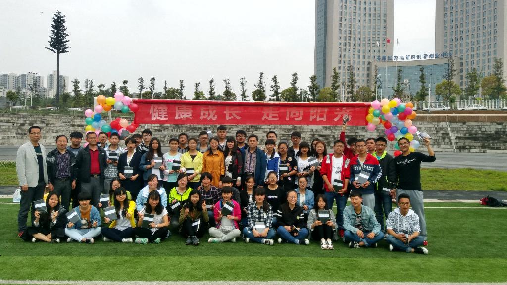 2016年4月23日(星期六)上午,安康学院第九届心理健康文化节之“健康成长 走向阳光”团体辅导活动在江北校区操场如期举行。本场团体辅导由经管学院辅导员石晓琳主持,学工部副部长黄娟、经管学院党总支书记郑武生和辅导员纪宏耀、王远银、张永涛以及50多名学生共同参与了团体辅导活动。