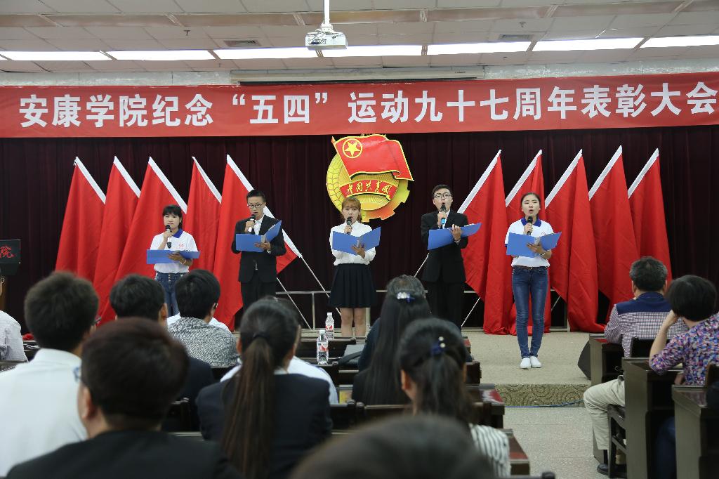 纪念活动在艺术学院合唱团演唱的中国共青团团歌《光荣啊!中国共青团》歌声中拉开帷幕。党委书记王国良在纪念大会上致辞。王国良首先代表学校党委、行政向长期奋斗在共青团岗位上的各级团干部和广大团员青年表示节日的祝福和诚挚的问候!王国良对过去一年我校各级团组织在青年学生思想引领、科技创新、社会实践、志愿服务、校园文化、社团建设等方面做出的卓有成效的工作表示肯定,与师生们共同回顾了97年前那场伟大的爱国运动,并深刻诠释了“爱国、进步、民主、科学”五四精神的时代内涵。他代表学校党政向全校共青团工作者和广大团员青年提出了希望和要求:一是希望同学们坚定理想信念,志存高远;二是希望同学们刻苦攻读,全面发展;三是希望同学们不断加强修养,健全人格;四是希望同学们勇于创新,积极实践;五是希望全校各级团学组织和干部转变工作作风,积极服务青年学生;最后,王国良表示学校的发展需要一代代青年的不懈努力,希望全校广大青年努力传承和发扬学校的优良传统,齐心协力,为实现学校“十三五”规划,把我校初步建成陕西省内有特色、高品质、一流的应用型本科院校而努力奋斗!