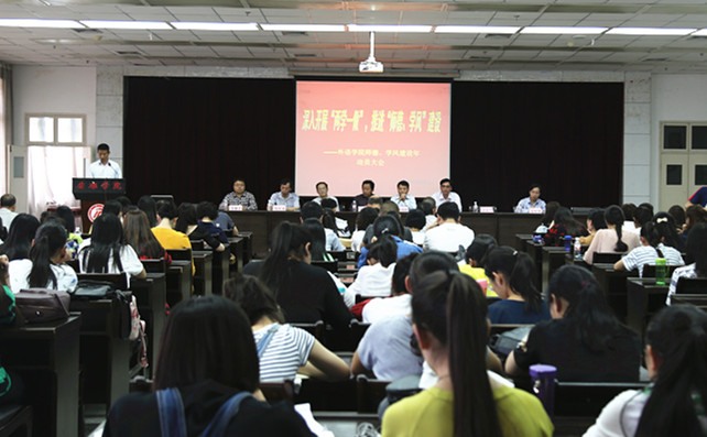 会上,外语学院党总支书记郭家平宣读了《外语学院师德建设工作实施意见》和《外语学院学风建设工作实施方案》,从活动主题,推进时间、指导思想、目标任务、方法步骤等五个方面做了具体而详实的安排。