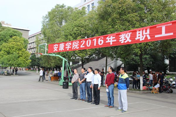 五月安康,阳光灿烂,绿意盎然。16日下午4时30分,安康学院教职工篮球赛在江南校区北体育场隆重开幕。学校党委书记王国良,副书记、工会主席胡鸿晓,工会专职副主席王斌,副主席袁海龙,体育学院院长冯德学,工会文体委员朱涛及各代表队领队、教练员、运动员参加了开幕式。开幕式由王斌主持,胡鸿晓致开幕辞,王国良宣布篮球赛开幕。