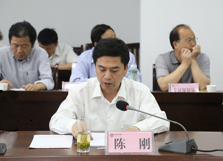 陈刚就学校近几年发展的基本情况做了简要汇报。他从理清办学思路,明确办学定位,坚定应用型人才培养的办学理念;强化内涵,突出应用,努力提高人才培养质量;积极开展大学生创新创业教育,服务学生成长成才;实施人才强校战略,构建结构合理的高素质教师队伍;加强学科专业建设,努力增强科研服务地方发展能力;积极发挥为地方文化建设的服务功能,构筑地方文化建设高地;加强对外合作交流,开放式办学初见成效;抢抓机遇,突破学校发展瓶颈;全面深化内部管理体制改革,提高内部治理能力和水平九个方面总结了我校近几年的主要工作,并对我校今后主要发展思路,目前办学中存在的突出困难,解决转型发展问题的意见和建议做了汇报说明。