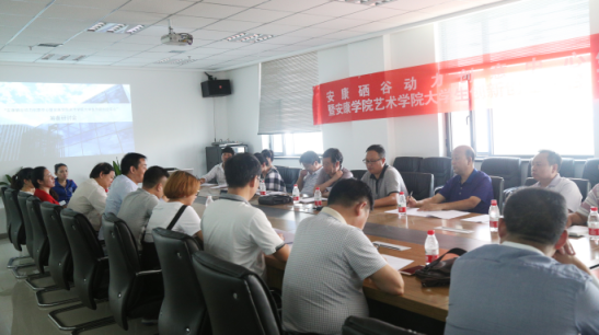 9月13日下午,我校“安康硒谷动力创意中心暨安康学院艺术学院大学生创新创业平台”筹备研讨会,在安康市创业大厦十三楼安康创新创业公共服务平台会议室召开。安康学院副校长向纪明,就业处处长丁义国、副处长常权纪,教务处副处长张纪生、发展规划处副处长符绳发、科技处副处长李霞、数学与统计学院院长赵临龙、电子与信息工程学院副院长陈守满、安康学院办学顾问党天才、秦巴众创空间科技发展有限公司总经理贺万海、安康市江南印务有限公司总经理林忠才、深圳格伦设计事务所首席设计师何象增、艺术学院副院长雷升录、艺术学院党总支书记王辉、艺术学院副院长鲍丽、视觉传达设计系主任吴波及设计系全体专业教师参加了研讨会。会议由雷升录主持。