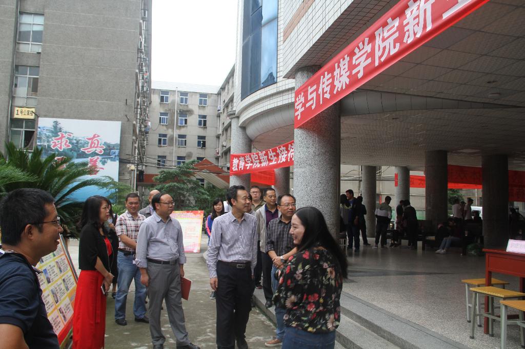 闵小平带领相关部门负责人在江南校区查看了文传学院、数统学院等6个二级学院的新生报到接待点及缴费处、绿色通道、军训服发放点等;胡波一行赴江北校区检查了电信学院、经管学院等6个二级学院的新生报到接待点以及联合办公点、1号教学楼等。在江南、江北两个校区,闵小平、胡波还分别与已经来校报到的新生及家长进行了亲切交谈,询问他们对学校的印象、来校后的适应情况等。