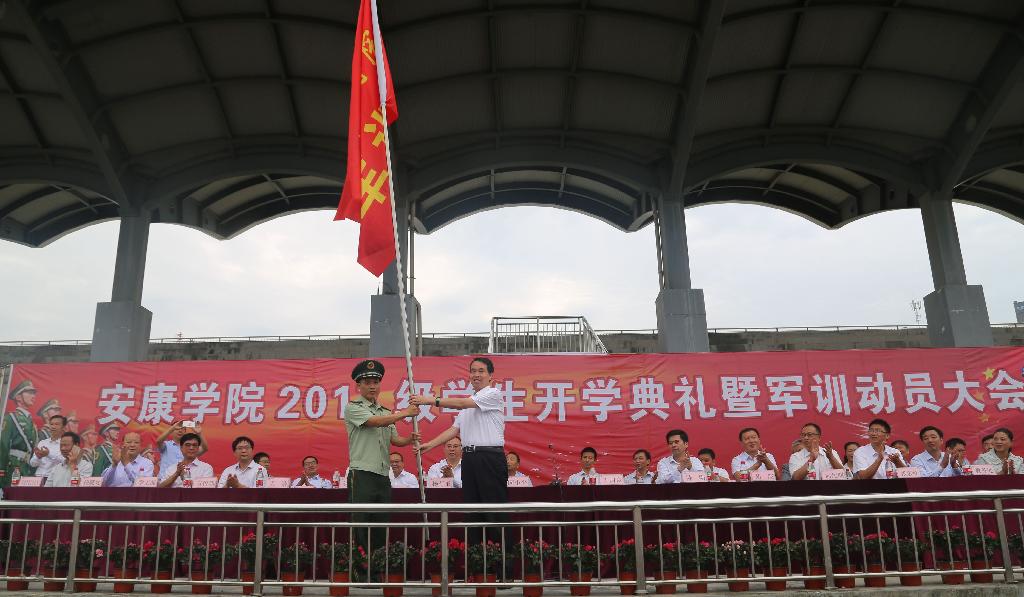 校党委书记王国良为军训团授旗并宣布军训开始,校长陈刚致辞。党委副书记、纪委书记闵小平主持大会。