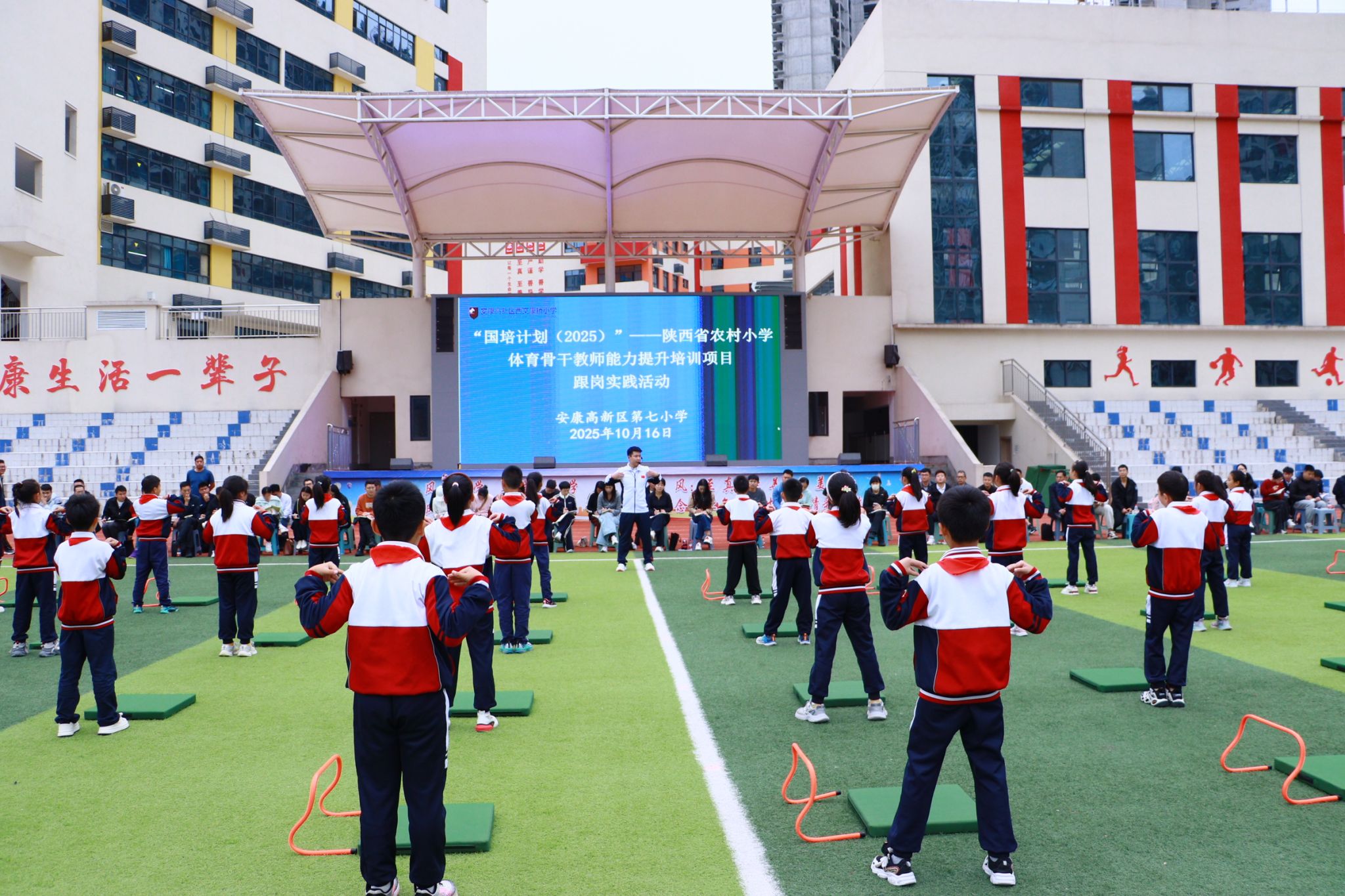 10月22日,“国培计划(2025)”— 陕西省农村小学体育骨干教师能力提升培训结业仪式举行,为期10天的集中培训落幕。该项目由省教育厅主办、我校承办,覆盖全省50余名农村小学体育骨干教师,以“专题研修+思政实践+名校跟岗+实践转化”模式,破解农村小学体育教学“课标落地难”“课堂创新不足”“安全教学把控弱”等问题。