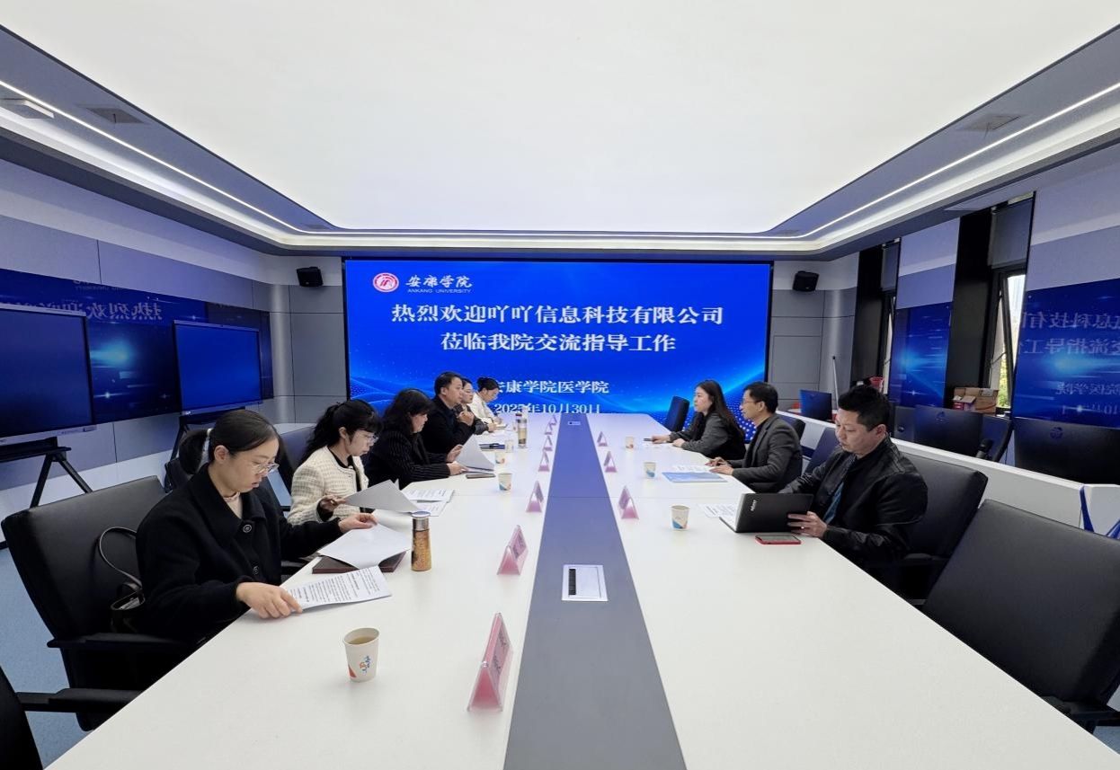 为深化产教融合,精准对接大健康产业人才需求,10月30日,西安吖吖信息科技有限公司代表于帅、赵倩、辛勇等一行应邀来访我校,与医学院围绕校企协同人才培养召开专题座谈会。医学院领导班子成员及各系部主任参会,会议由医学院党总支书记黄勇主持。