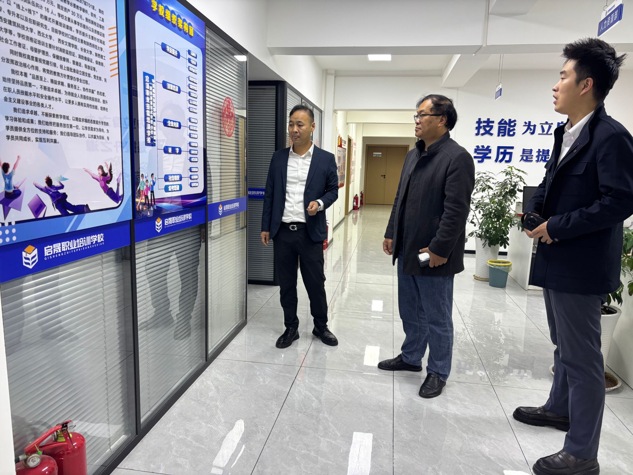 在西安启晟职业学校,王刚系统汇报了教育学院人才培养目标、毕业要求、课程设置及就业工作开展情况。该校书记赵帅、校长方虎介绍了学校核心业务板块,双方围绕学生技能提升、实习基地建设、考编培训合作、就业渠道拓展等关键领域深入探讨,明确后续合作推进思路与具体举措。