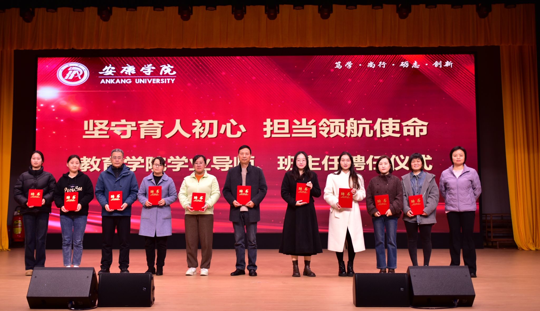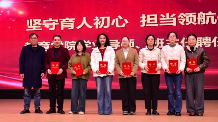 大会现场,教育学院院长王刚、党总支书记王璐分别宣读《教育学院学业导师实施办法》《班主任队伍建设实施细则》并公布首批聘任名单,领导班子为受聘学业导师及班主任颁发聘书。此举是学院落实学校“健全学生指导服务体系”整改要求的重要举措——学业导师聚焦学术引领与专业发展,班主任侧重思想引导与日常管理,通过“专业+人文”双轨覆盖,推动学生指导服务从“粗放式”向“专业化、系统化”升级,为学生成长成才提供精准支撑。