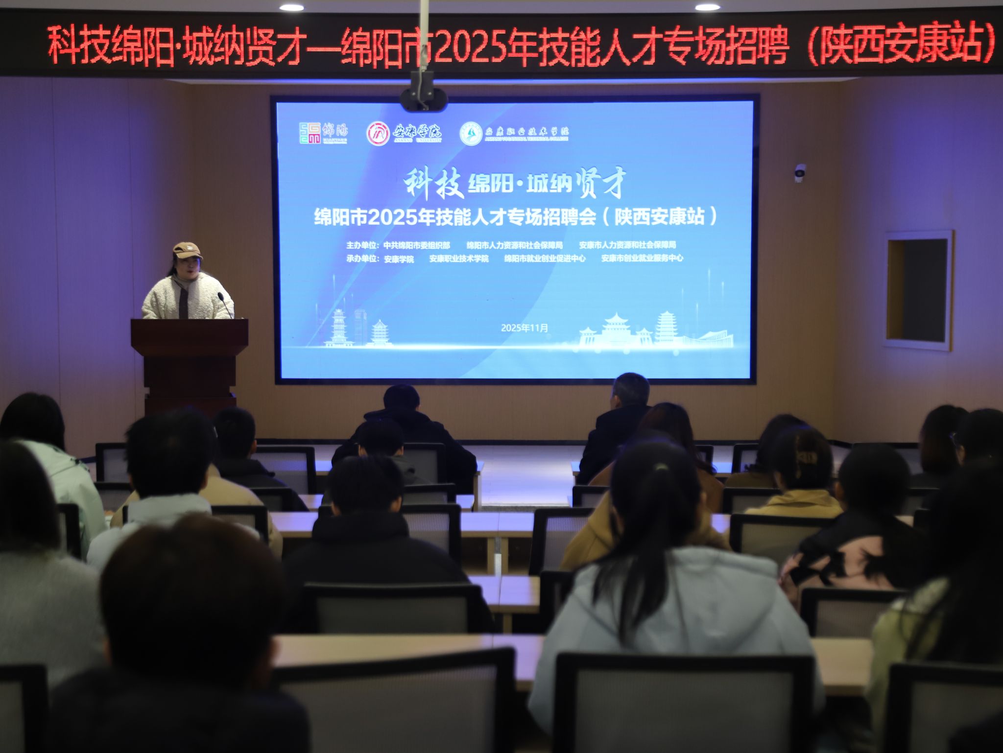11月17日,“科技绵阳・城纳贤才”绵阳市重点企业人才专场招聘会在我校江北校区举办。副校长屈险峰,绵阳市委组织部三级调研员肖强,绵阳市、安康市就业创业服务中心相关负责人,安康职业技术学院副院长赵德安等出席,学校就业指导中心、教务处、合作发展处及电信学院、化环学院等部门参加活动。