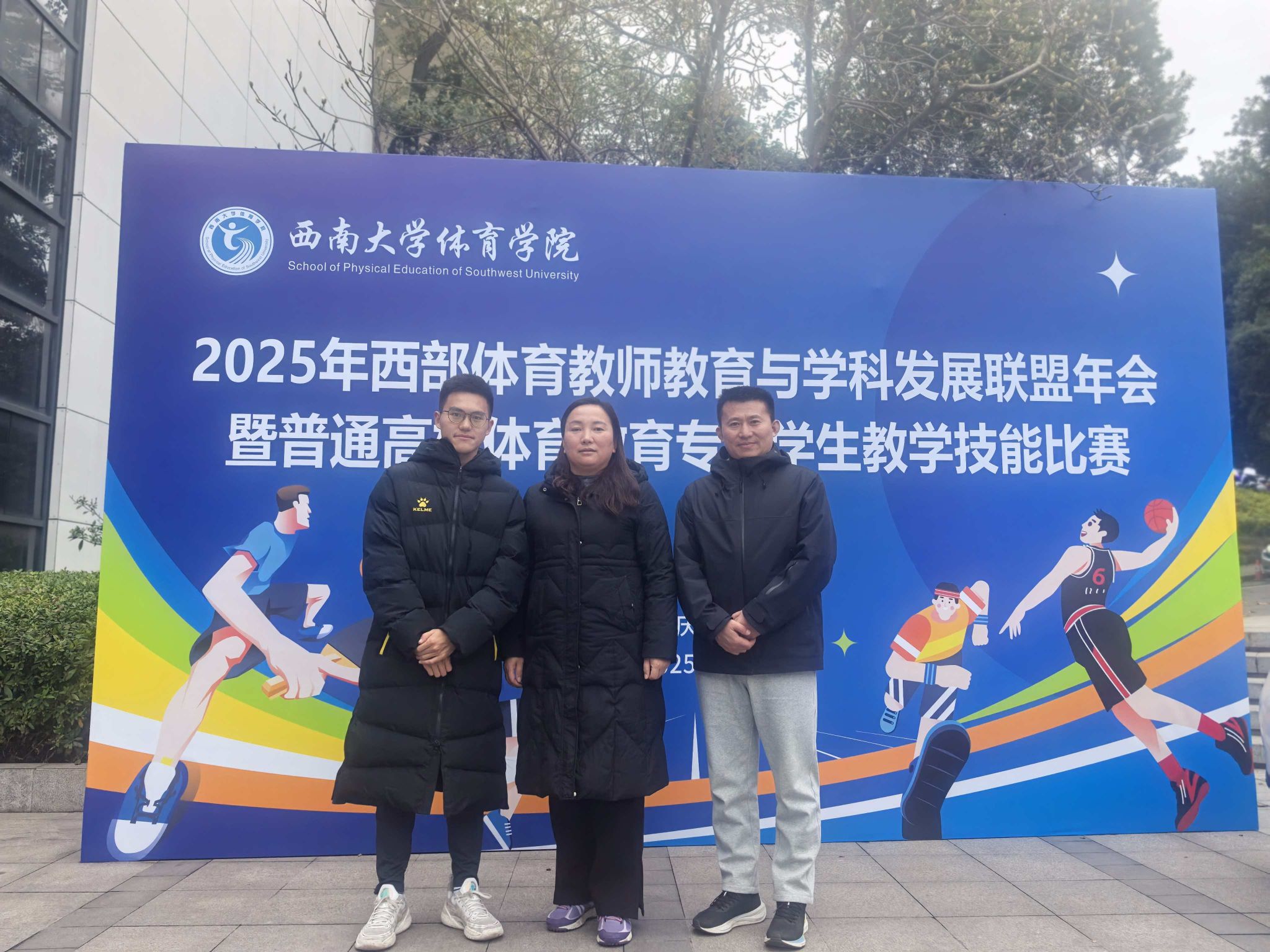 12月12日至14日,2025年西部体育教师教育与学科发展联盟年会暨高校体育教育专业学生教学技能比赛在西南大学举办。体育学院院长吕仙利、副院长郭西魁带队,青年教师夏祺飞及两名学生参会,师生在学术研讨与技能竞赛中双线丰收。