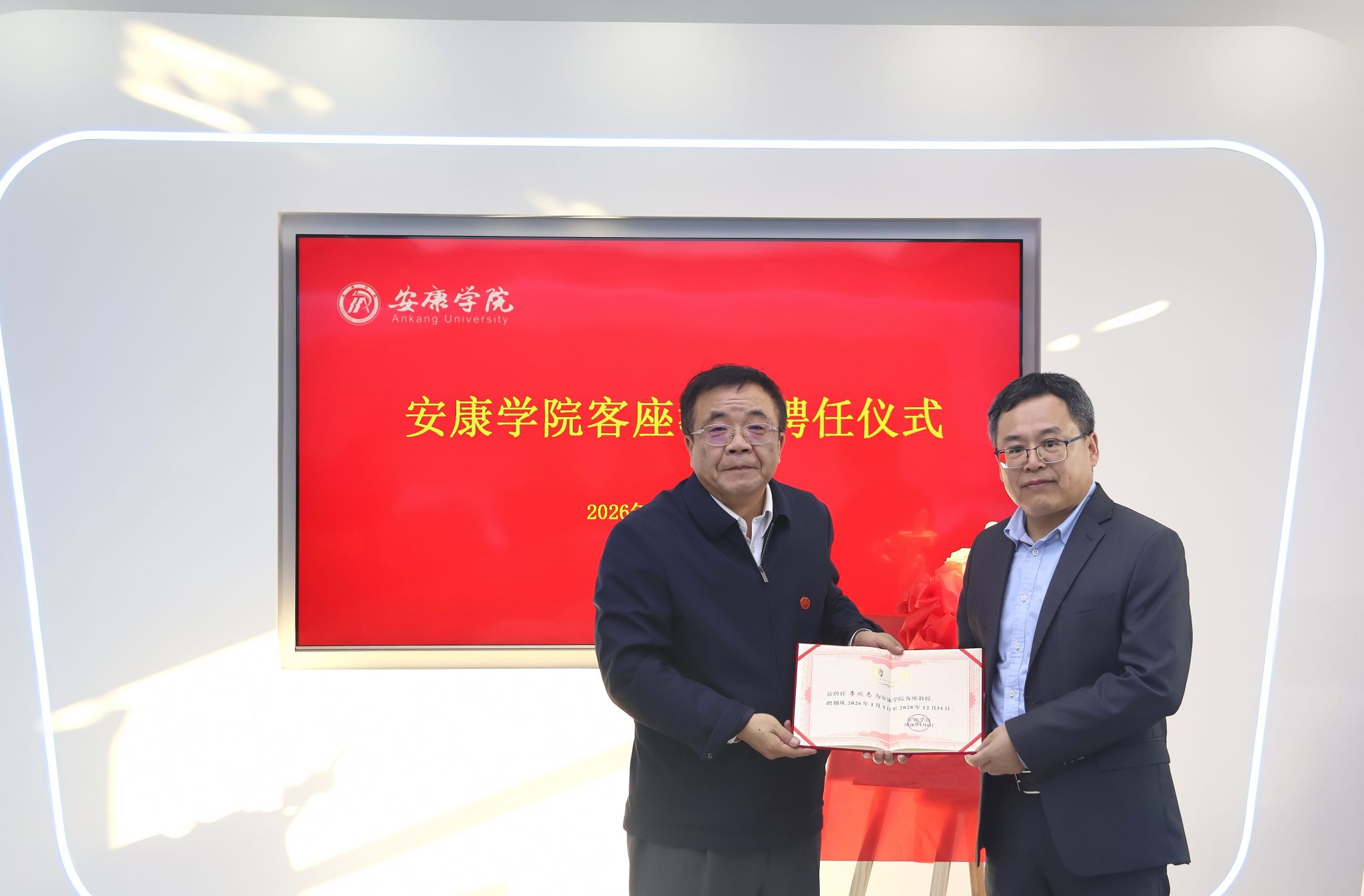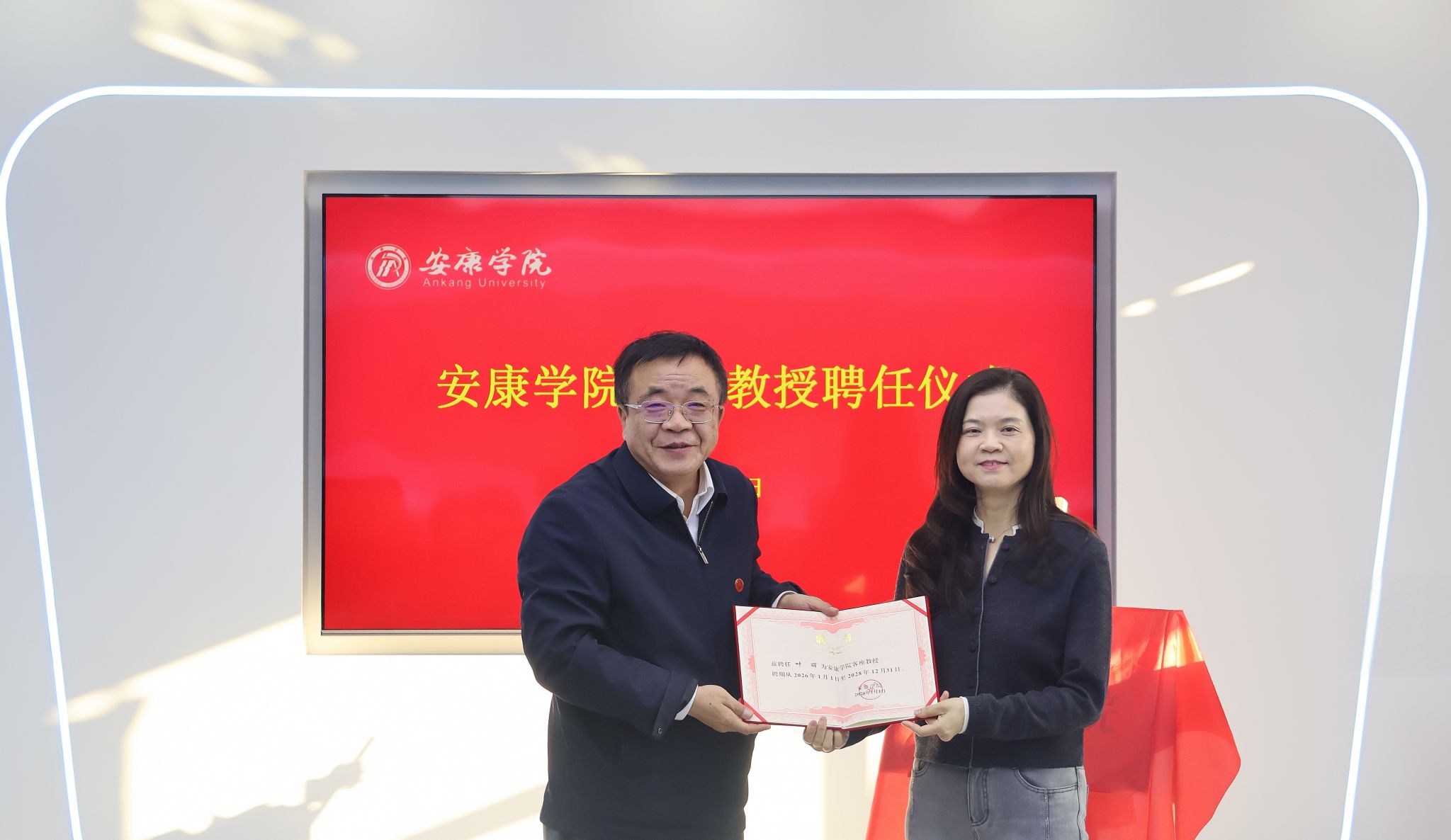 1月7日,学校举行客座教授聘任暨药学院揭牌仪式。校长余劲为澳门科技大学药学院课程主任叶丽教授、李欣志助理教授颁发安康学院客座教授聘书,与两位客座教授、陕西新润药业董事长郑智伟共同为药学院揭牌。三方围绕合作事宜展开座谈交流,副校长崔晓明主持会议,教务处、科研处、合发处、外语学院(国际教育学院)、化环学院、医学院等相关部门负责人及教师代表参加座谈。