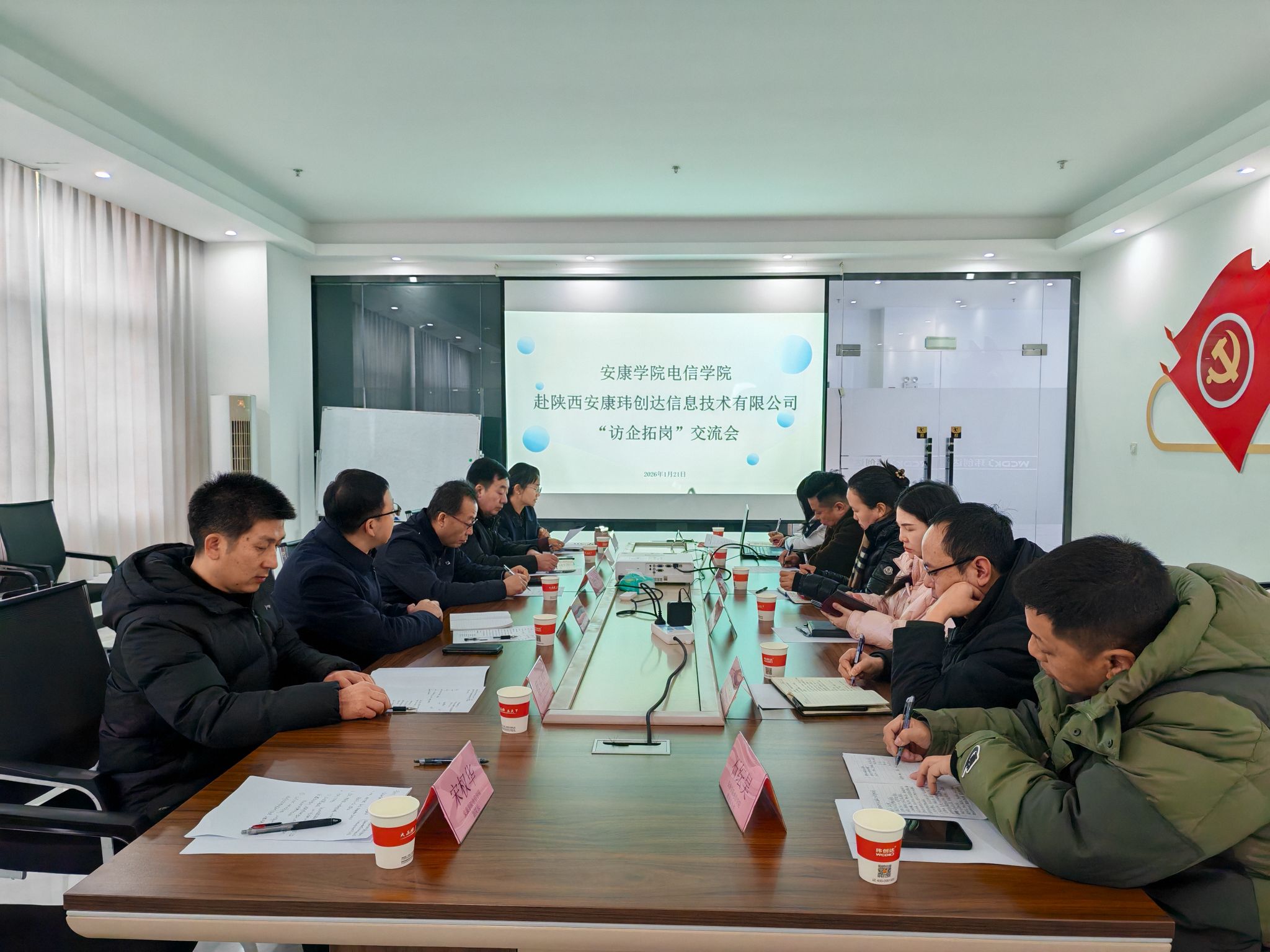 1月21日,副校长胡海青带领教务处、电信学院相关负责人,赴陕西安康玮创达信息技术有限公司、陕西维讯创达半导体科技有限公司等企业开展“访企拓岗”专项考察交流,推动校企协同育人落地见效。