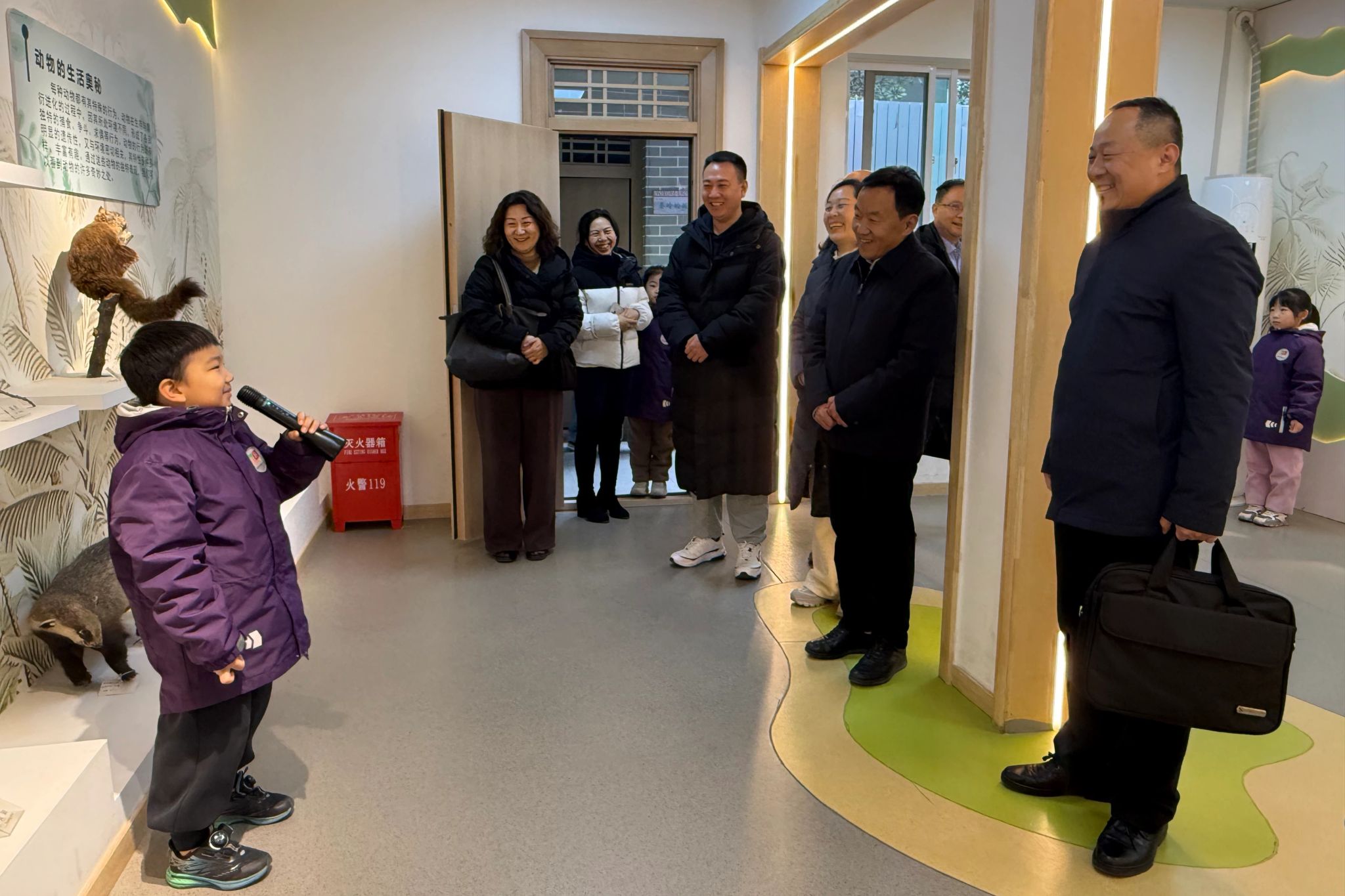 随后,钟生海一行赴西安实验小学教育集团考察。在贤德校区,大家参观了由一年级学生担任讲解员的秦岭博物馆。在尚德校区举行的座谈会上,西安实验小学教育集团总校长张蓉对钟生海一行的到访表示欢迎,并详细介绍了学校的办学理念、发展概况及艺术教育特色。钟生海介绍了学校相关专业基本情况以及此次访企的目的。双方就基础教育阶段艺术师资培养、师范生见习实习基地建设、美育课程协同开发等合作事项进行了深入探讨。目前就职于该校的牛龙勇、谢卓、熊毅乐三位校友分享了各自的职业成长经历与工作体会,感谢母校培养,并结合一线教学实践为学校人才培养与专业建设提出建议。钟生海认真听取发言,对校友取得的成绩表示祝贺,强调校友是学校的宝贵财富,希望以此次走访为契机加强联系,搭建产学研合作平台,拓宽就业渠道,并欢迎校友常回校交流。