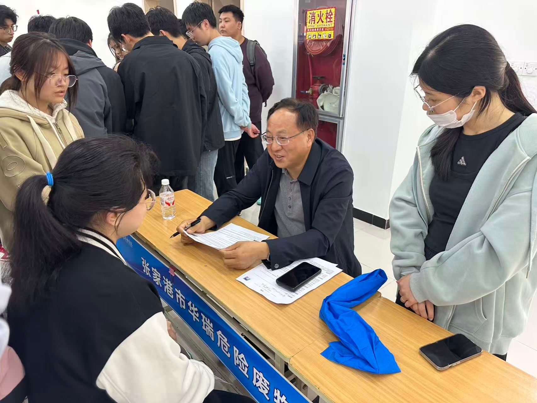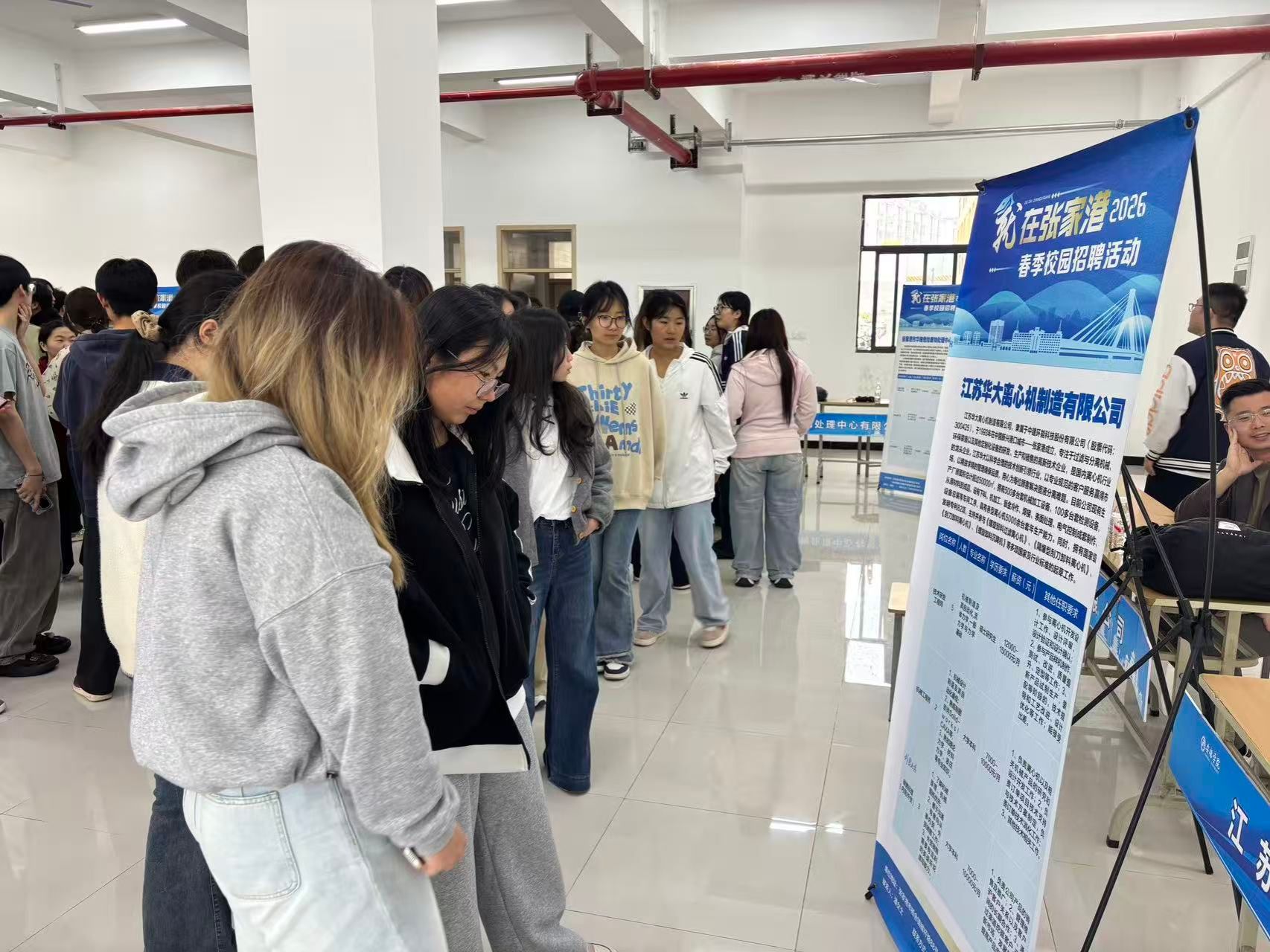 为深入落实学校就业工作部署,精准抢抓春季促就业黄金窗口期,4月11日,由化环学院承办的我校2026年“就在张家港”校园专场招聘会在江北校区顺利举办。学工部及各相关二级学院负责人到场指导,校企协同助力毕业生求职。