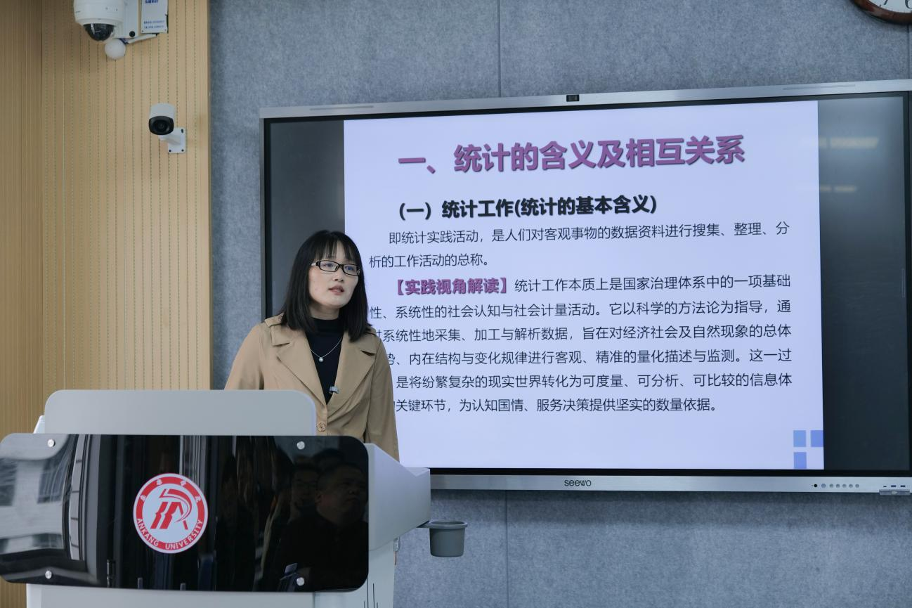 作为核心授课单位,数统学院依托学科优势精心筹备。培训分三期开展,特邀宋丽影博士主讲《统计学原理》《国民经济核算》核心课程。首期培训紧扣统计专业技术资格考试大纲,结合典型案例深入解读《统计学原理》,覆盖统计理论、设计、调查、整理、分析五大核心模块,帮助参训干部打通知识堵点、补齐短板,提升运用统计思维解决问题的能力。