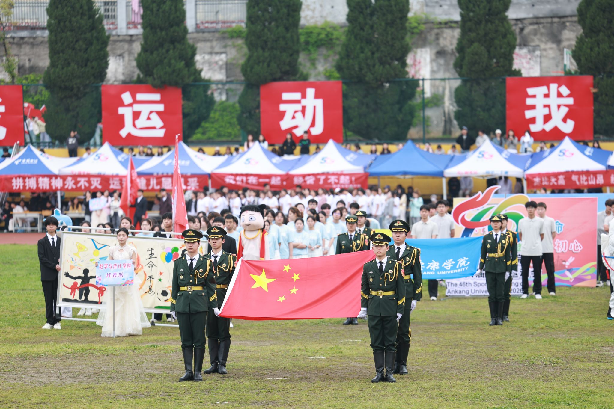 “安康学院第四十六届体育运动会开幕!”随着崔晓明一声令下,礼炮鸣响,彩烟腾空,运动盛会就此拉开帷幕。