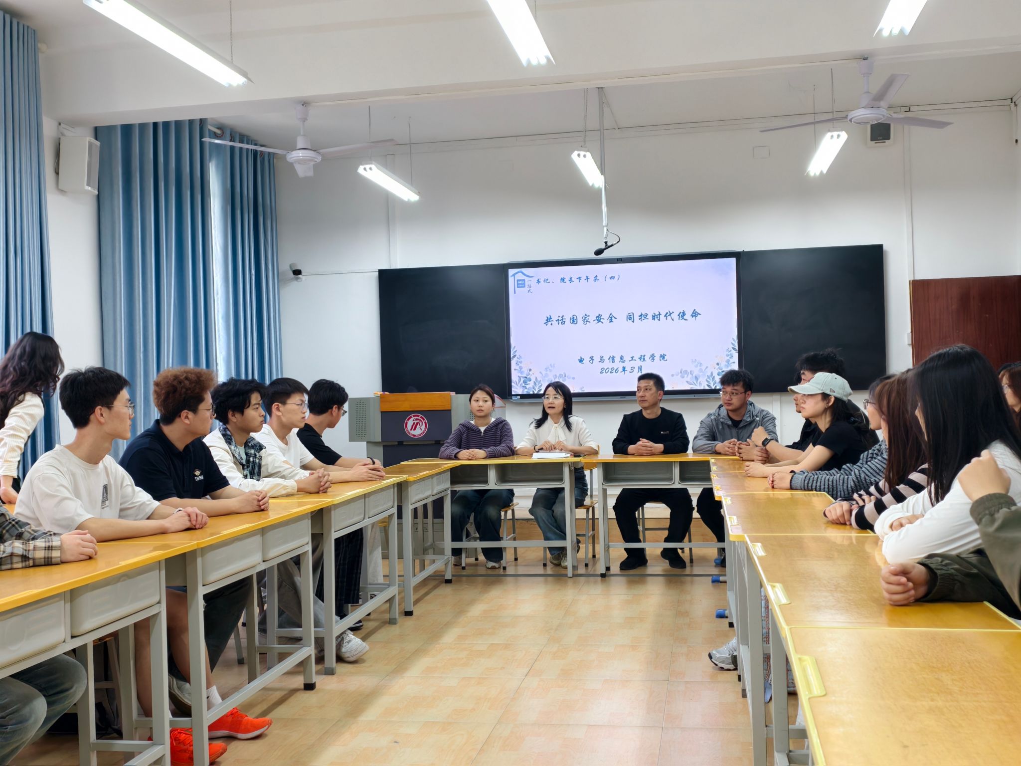 与此同时,学院开展主题征文、书画、海报设计等作品征集,涌现出一批主题鲜明、创意新颖的优秀作品,以文艺形式诠释“国家安全、人人有责”理念;举办“国家安全・青年谈”书记院长下午茶,师生围坐共话专业赋能与安全担当,推动安全教育走深走实。教师团队同步开展教学研讨,探索国家安全知识进课堂、进课程,努力实现“课程门门有安全,教师人人讲安全”。