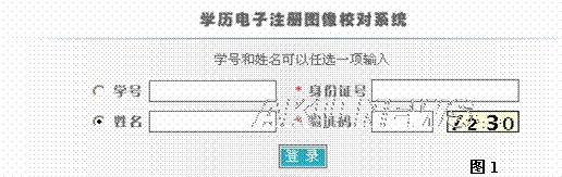 一、凡是2010届毕业的学生(2006级本科、2007级专科、2008级专升本),请登录中国高等教育学生信息网----学历电子注册图像校对系统(网址为http://xjxl2.chsi.com.cn/pv/stu/login.do),在登录界面(图1)中必须输入姓名、身份证号、验证码然后单击“登录”进入个人图像信息核对界面(如图2所示)。