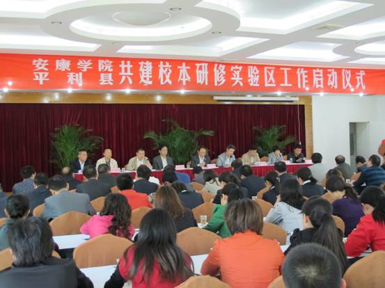 为进一步加强我省中小学教师队伍建设,省教育厅决定在全省开展校地共建校本研修实验区建设项目。该项目旨在发挥高师院校的积极作用,引领中小学校和教师以校为本,以有效课堂教学为中心,以改进教学实践为目的,通过伴随教学全过程的循环往复的研、学、训行动,促进教师专业化成长,进而推进教学质量的全面提高。日前,我院与平利县教体局合作共建校本研修(平利)实验区工作在平利县正式启动。我院副院长杨行玉,陕西省教育科学研究所副所长杨雪峰,安康市教育局副局长张柏林,中共平利县委副书记许启政,平利县人民政府副县长李黎,我院继续教育学院副院长、实验区项目负责人王永东及安康市教育局、平利县教育体育局相关工作人员、校本研修实验学校的校长和教师代表180余人出席了启动仪式。