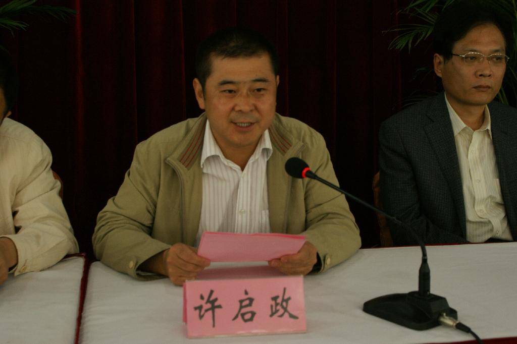 许启政代表平利县委、县政府致词,表示平利县教育体育局牵手安康学院,合作共建校本研修实验区,必将给平利县基础教育发展和中小学教师专业化成长注入新的活力,平利县将按照省教育厅《关于全面推进中小学教师校本研修的意见》精神,采取坚强有力的措施,将校本研修实验区建设的各项任务做实做细,向全县人民交上一份满意的答卷。